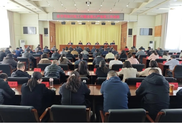 3月18日,市司法局召开全市司法行政工作暨全面从严治党工作会议,深入贯彻党的二十大和二十届二中、三中全会精神,学习贯彻习近平法治思想和习近平总书记对政法工作的重要指示精神,贯彻落实中央、省、市政法工作会议、全省司法行政工作会议、市委八届八次全会暨市委经济工作会议和市两会精神,总结2024年工作,分析形势问题,研究部署2025年我市司法行政工作以及全系统全面从严治党工作。市司法局党组书记、局长傅彦虎参加会议并讲话。市司法局党组成员、副局长李建民主持会议。